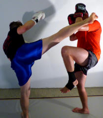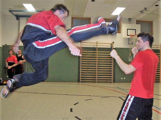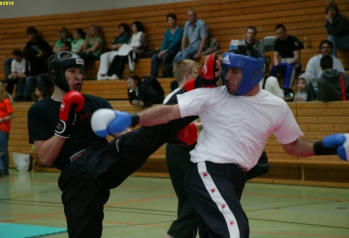 eine Kombination aus KICKEN und BOXEN, Fausttechniken wurden zum größten Teil aus dem Boxen übernommen, die Fußtechniken stammen aus den traditionellen asiatischen Kampfsportarten, wie z. B. dem Karate, Taekwondo und Thaiboxen. Kickboxen ist ein Leistungssport, der auch als reiner Fitnessport betrieben werden kann , d. h. wettkampflos. Wer Kickboxen als Wettkampf betreiben will kann sich hier in verschiedenen Disziplinen messen. Es gibt als Diziplin das Poinfight-/Semikontakt, Leichtkontakt und Vollkontakt - Kickboxen, diese 3 Wettkampfarten werden noch in einzelne Gewichtsklassen (wie beim Boxen) unterteilt. Nicht nur ein Männersport, auch immer mehr Frauen betreiben diesen Kampfsport (auch Wettkampf).Trainingszeiten Kickboxen :Montag 19:00 Uhr - 21:00 UhrDonnerstag 19:00 Uhr - 21:00 Uhr